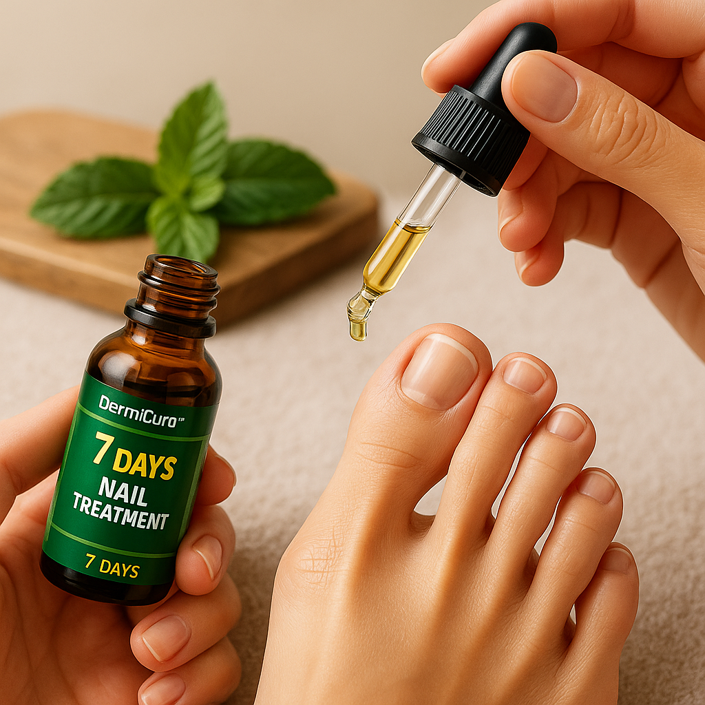 Tinha uma unha grossa e amarelada há meses. Com DermiCura™ comecei a ver melhorias em poucas semanas – menos espessura e cor muito mais uniforme.